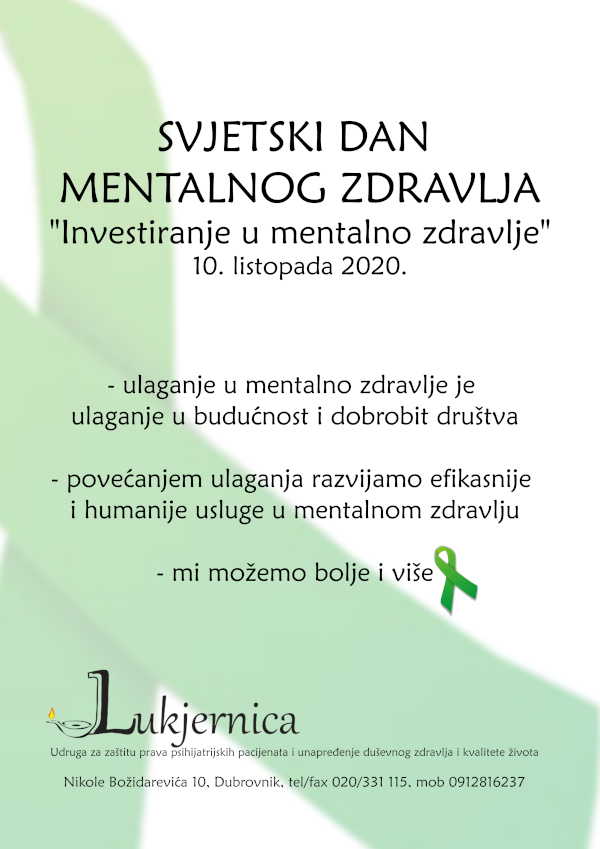 Udruga Lukjernica, od svojih početaka 2003., obilježava Svjetski dan mentalnog zdravlja kako bi promicala prava psihijatrijskih bolesnika.