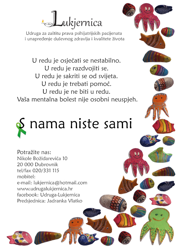 S nama niste sami – članovi Udruge Lukjernica u suradnji s psihijatrijskim odjelom OB Dubrovnik posjećuju pacijente odjela i predstavljaju rad Udruge.